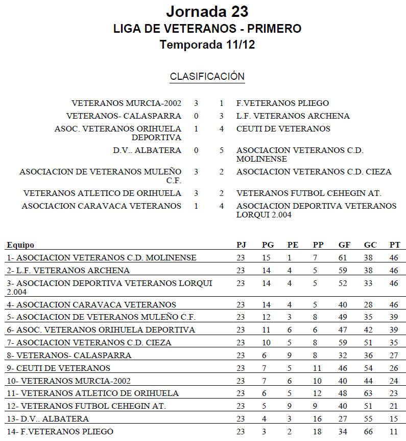 - Un 73 % el CARAVACA VETERANOS.